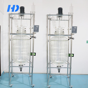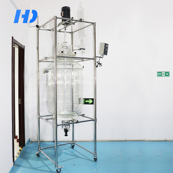 Réacteur en verre à double couche de 200 L avec cadre de support mobile et condenseur